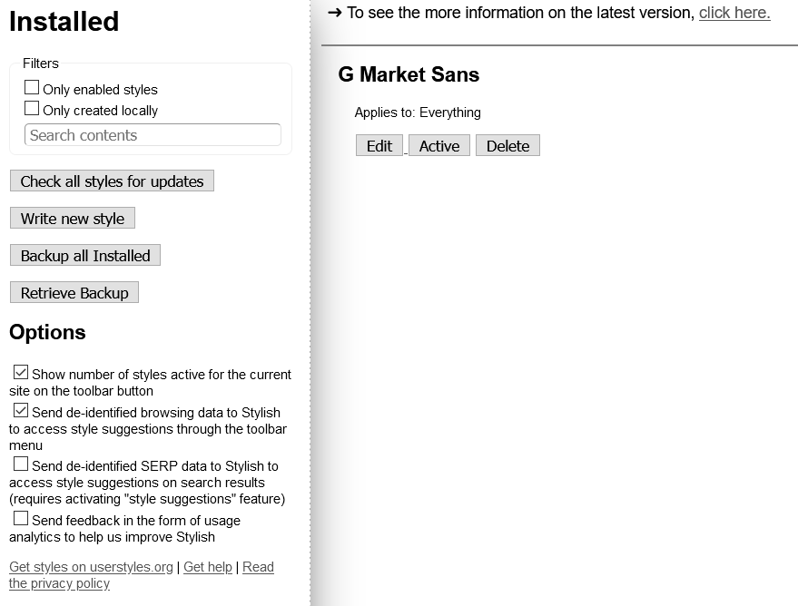 Stylish는 상단에 있는 버튼 누르고