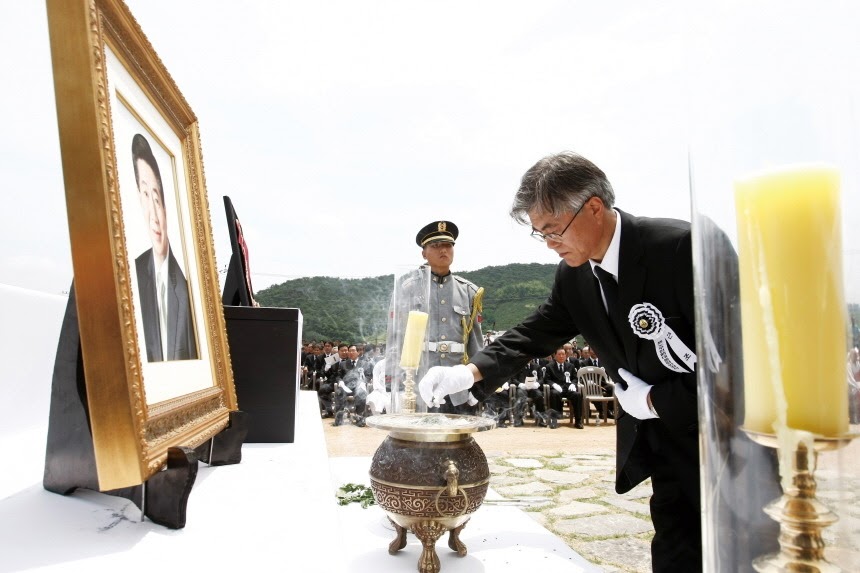 노무현 대통령이 모든 번뇌와 시대의 무거운 짐을 내려놓고 그저 안식과 자유를 누리길 바라는 마음 하나로 안장식을 준비했다. 불교계의 각별한 지원에 힘입어 49재를 지냈다. 이 자리를 빌려 감사드린다. 묘역 조성은 문화예술계의 전문가들이 기꺼이 맡아주었다. 유홍준 전 문화재청장이 나서서 ‘아주 작은 비석위원회’를 구성했다. 유홍준 교수, 역사학자 안병욱, 건축가 승효상, 미술가 임옥상과 안규철, 조경 정영선, 그리고 황지우 시인 등으로 짜여진 드림팀이었다. 그 분들 덕분에 오늘의 묘역이 이렇게 아름답게 꾸며질 수 있었다.