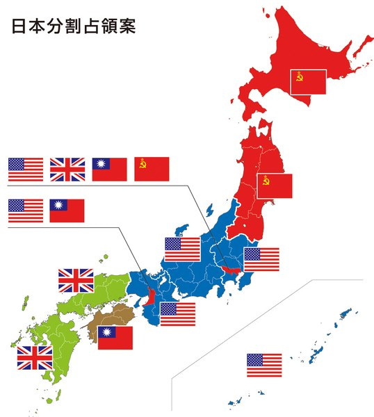 1945 년 8 월 11 일 미국 국무 · 육 · 해군 3 성 조정위원회 (SWNCC)가 승인하고 8 월 18 일 트루먼 대통령이 승인 한 대통령 앞에 각서 "일본의 패배의 본토 점령군의 국가적 구성 (NationalComposition of Forces to Occupy Japan Proper to the Post-Defeat Period) (SWNCC 70/5)에서 연합국에 의한 분할 점령 방안이 포함되어있다.