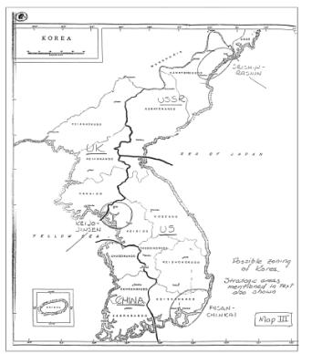 정책이 변경된 결과, 그 유탄을 맞은 것이 한반도였다. 일본 점령에서 소련을 배제한 미국이 이를 달랠 카드로 한반도 분할을 내세웠다. ┄