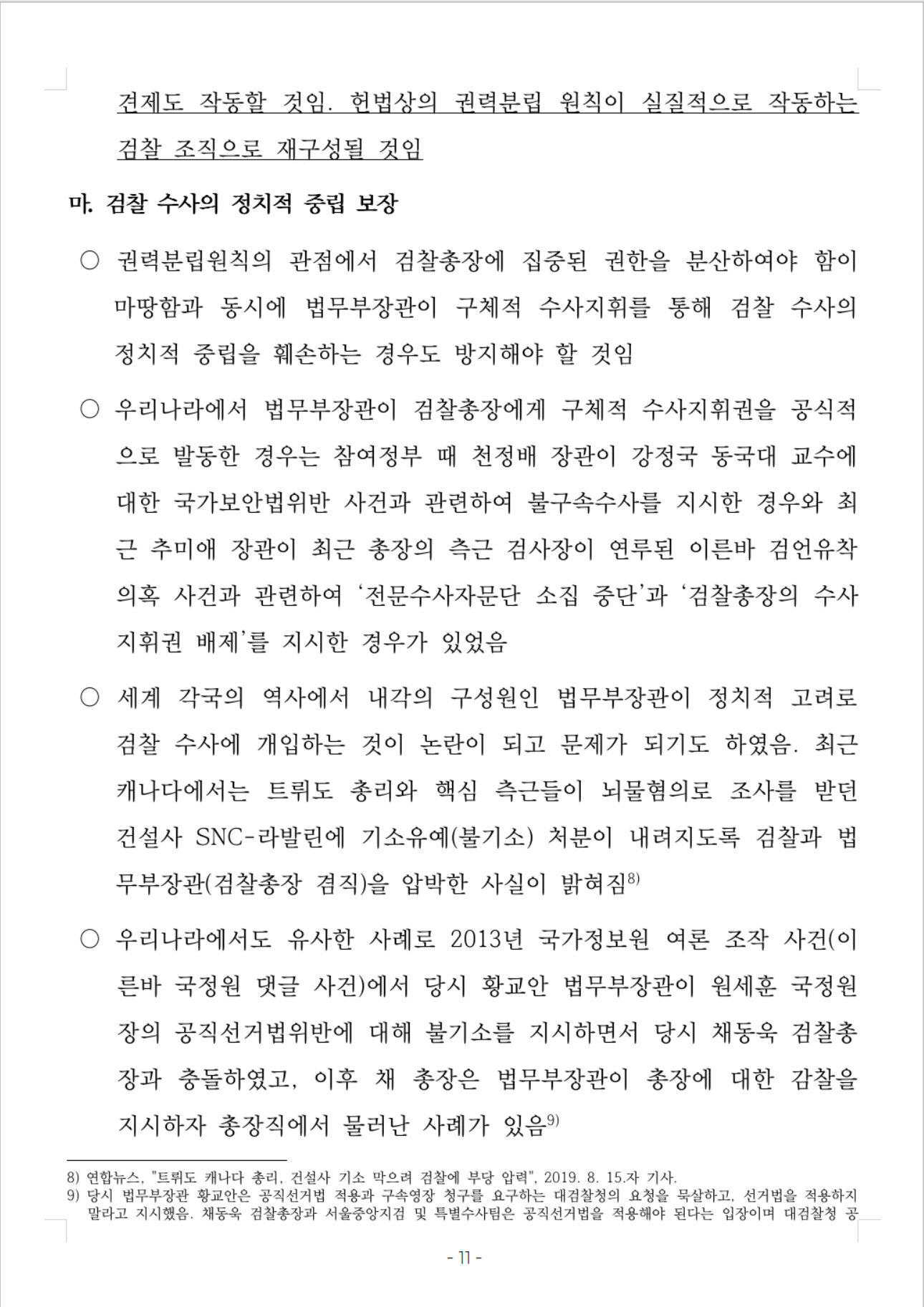 마. 검찰 수사의 정치적 중립 보장