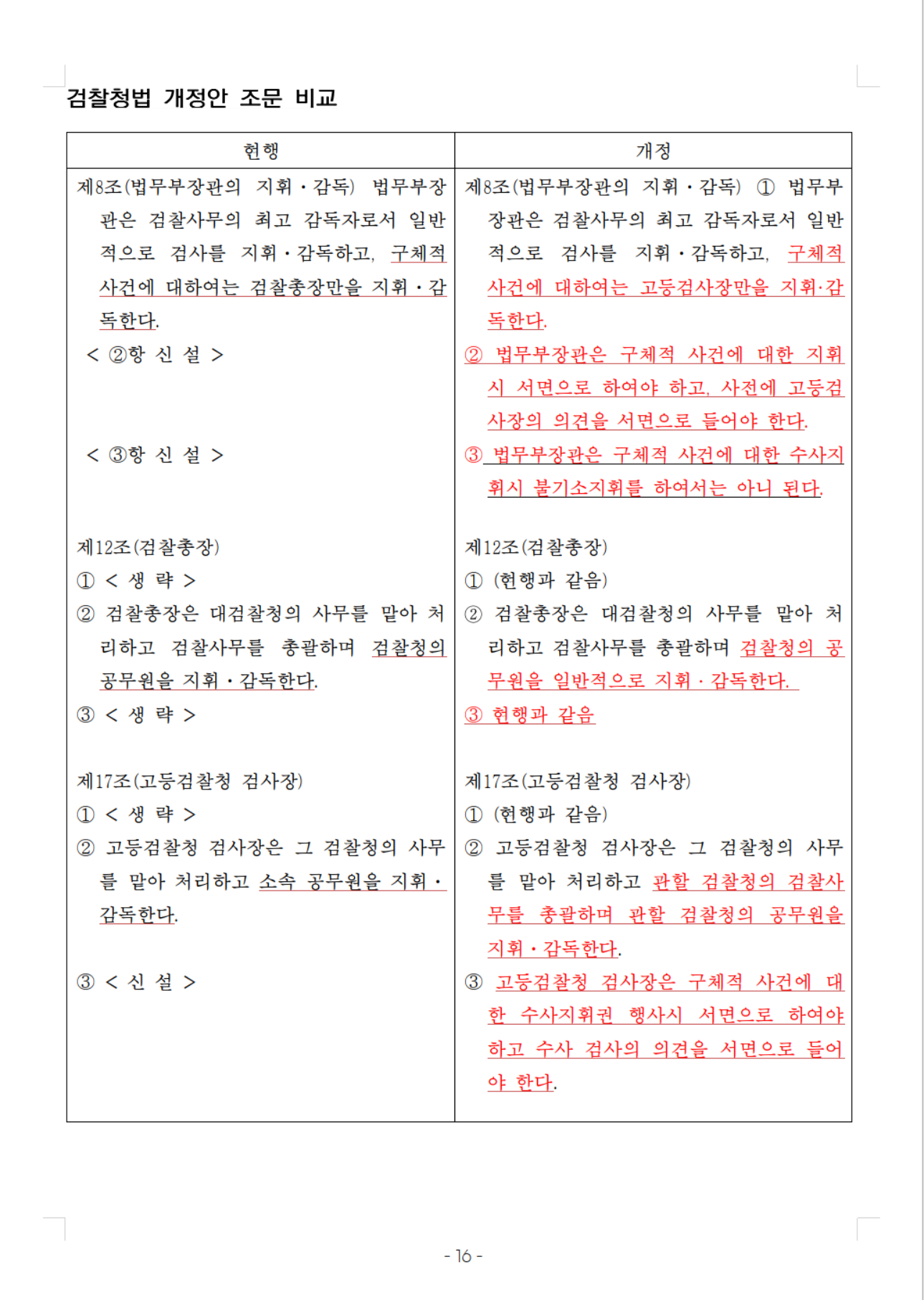 검찰청법 개정안 조문 비교