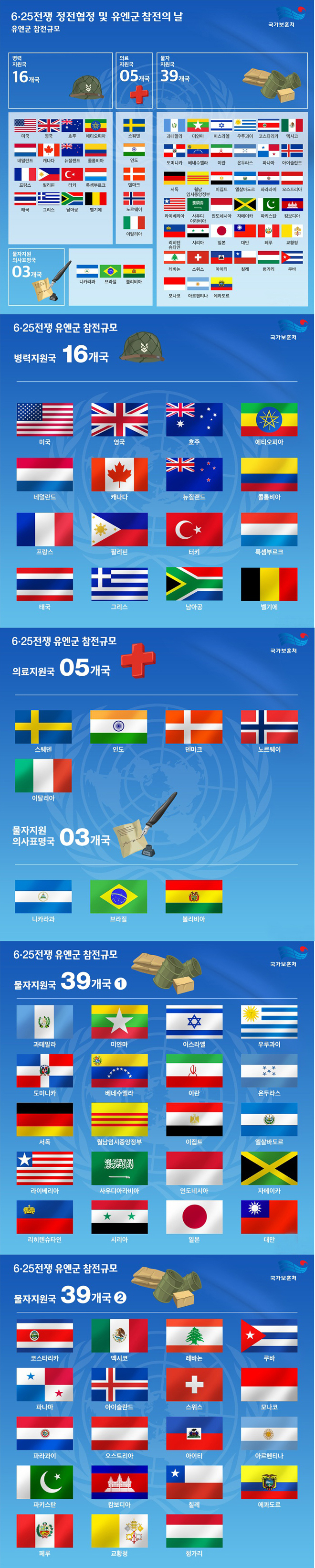 ▲ 참전국 (16개국) = 미국, 영국, 터키, 캐나다, 호주, 프랑스, 그리스, 콜롬비아, 태국, 네덜란드, 에티오피아, 필리핀, 벨기에, 뉴질랜드, 남아프리카공화국, 룩셈부르크